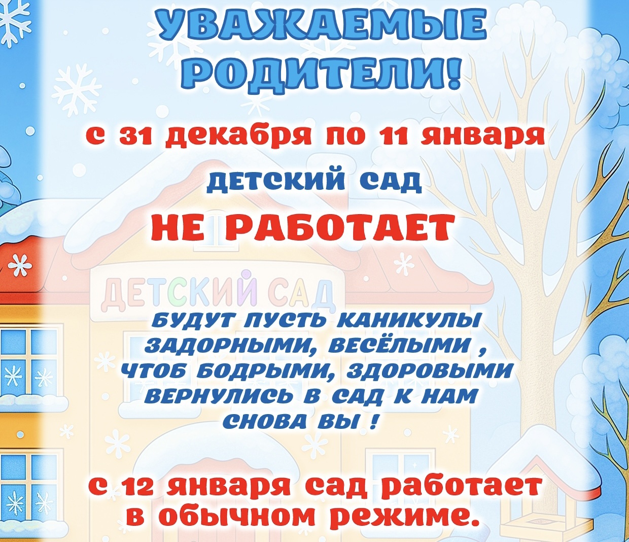 с понедельника по пятницу, группы функционируют в режиме полного рабочего дня (12-часовое пребывание детей)
