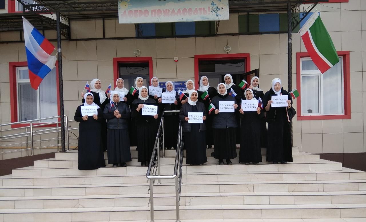 Коллектив МБДОУ "Детский сад №2 с.Аллерой" идет на выборы президента РФ.